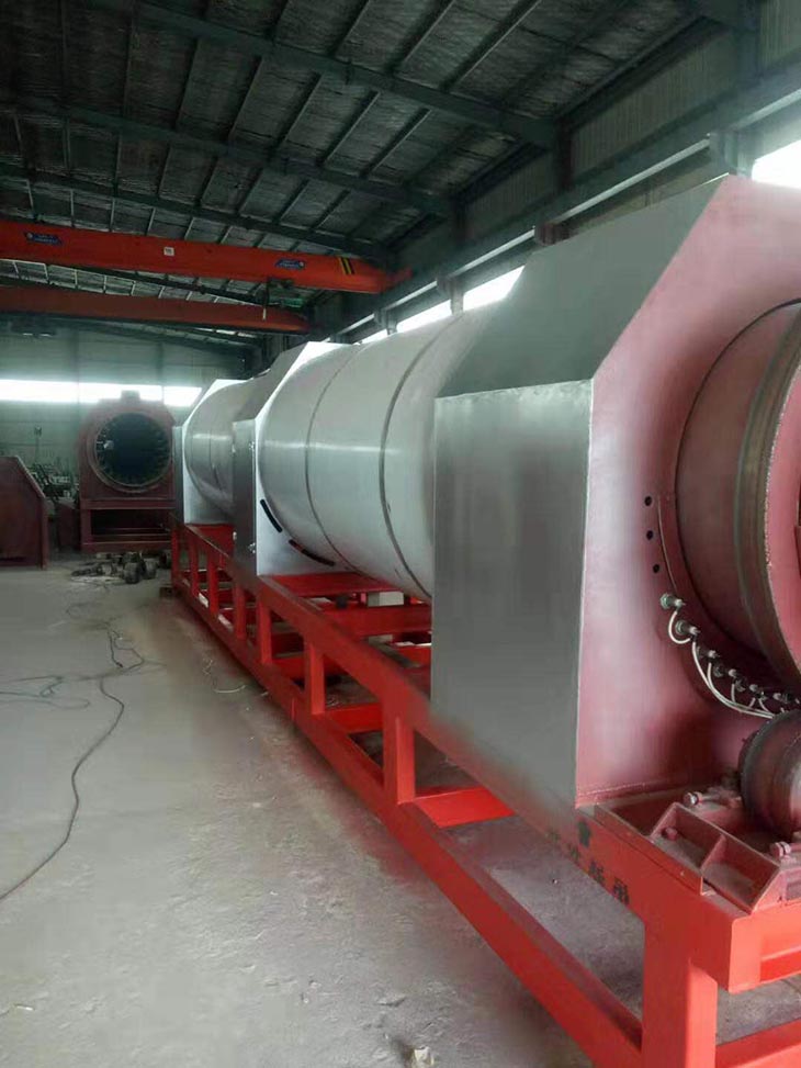 我們解決其技術(shù)問(wèn)題所采用的技術(shù)方案是:一種新型環(huán)保節(jié)能熱風(fēng)炒爐,由電源供電,包括第一燃燒室、第二燃燒室、熱風(fēng)炒爐滾筒、存料機(jī)、自動(dòng)喂料器、出料機(jī)、引風(fēng)機(jī)和排潮風(fēng)機(jī),所述熱風(fēng)炒爐滾筒的入口端通過(guò)自動(dòng)喂料器與所述存料斗連通,所述熱風(fēng)炒爐滾筒的入口端還通過(guò)風(fēng)道與所述排潮風(fēng)機(jī)連通,所述熱風(fēng)炒爐滾筒的出口端與出料機(jī)連通,所述第一燃燒室和第二燃燒室通過(guò)風(fēng)道與引風(fēng)機(jī)連通,所述第一燃燒室和第二燃燒室分別位于所述熱風(fēng)炒爐滾筒的下方,所述熱風(fēng)炒爐滾筒軸心線與水平面形成2°到8°的夾角,所述第一燃燒器和第二燃燒器安裝位置在相應(yīng)燃燒室的前端或者相應(yīng)燃燒室的兩個(gè)側(cè)面。我們?cè)O(shè)備取消了原熱風(fēng)炒爐所配套的單獨(dú)熱風(fēng)爐、彎段風(fēng)道或直段風(fēng)道;在炒爐滾筒下方設(shè)計(jì)安裝兩份熱風(fēng)燃燒室,用燃燒器產(chǎn)生的熱風(fēng)直接對(duì)滾筒進(jìn)行加熱,******限度地縮減了炒爐散熱環(huán)節(jié)和面積,從而實(shí)現(xiàn)炒爐連段式加熱。與現(xiàn)有設(shè)備相比,我們公司設(shè)備充分利用了熱風(fēng)釋放的熱量,減少了熱量損失,單噸油料或糧食加工消耗添人氣甚至能降低到25nm3,降低了17%,節(jié)能降耗效果非常明顯,得到了客戶的一致好評(píng)。與現(xiàn)有設(shè)備相比,同等日加工量,所配兩臺(tái)燃燒器合計(jì)功率比現(xiàn)有設(shè)備燃燒器功率下降20%-30%,熱風(fēng)設(shè)定溫度有750-800℃下降到400-500℃,明顯延長(zhǎng)了炒爐的使用壽命。第一燃燒室和第二燃燒室的功能各不相同,工作溫度也不一致,第一燃燒室和第二燃燒室能夠?qū)崿F(xiàn)分段加熱溫度控制,更加靈活與合理,安全可靠,便于操作與控制。